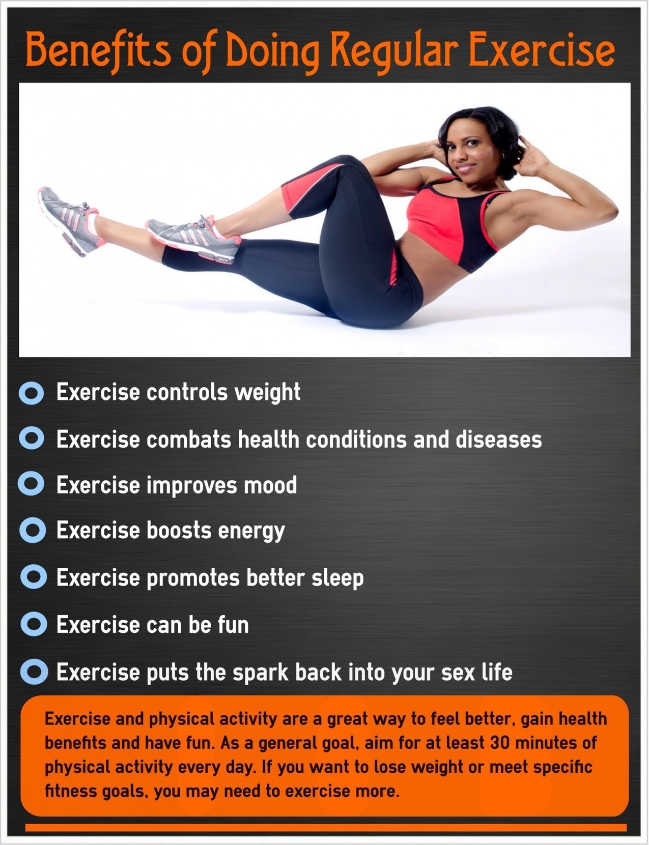 There are numerous benefits to exercise. Exercise reduces stress, alleviates depression, improves learning, improves self-esteem and body image, and helps you live longer. It also makes you feel good! Numerous studies have shown that diabetes, hypertension, show more content Many believe that exercise can only benefit a person physically, but this is simply fallacious. Exercise contributes to all the seven dimensions of health; emotional, environmental, social, intellectual, spiritual, and of course physical. Exercise benefits people in all Jan 19, · 10 Lines on Benefits of Exercise in English Exercise helps to control and maintain a constant weight by preventing a person from gaining excess weight or maintain Exercise combats health conditions and diseases. Exercise improves wellbeing and mood. Exercise